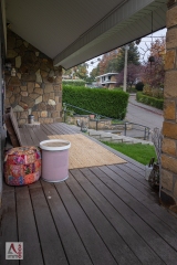 Grand porche/terrasse couverte menant vers l'entrée de la maison.