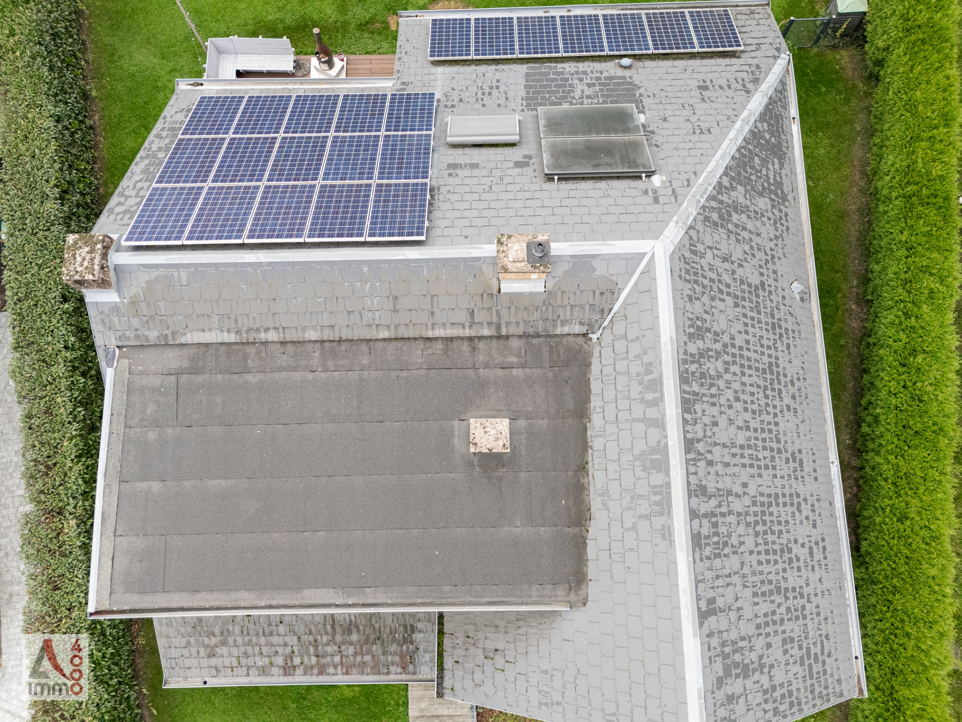 CC gaz avec chaudière au gaz à condensation de 2013 et son boiler indépendant, 22 panneaux photovoltaïques 245Wc, châssis PVC DV avec volets, alarme, toiture isolée, raccordement à l'égout, citerne eau de pluie (raccordement actuel aux chasses d'eau),....