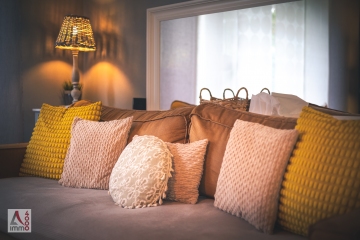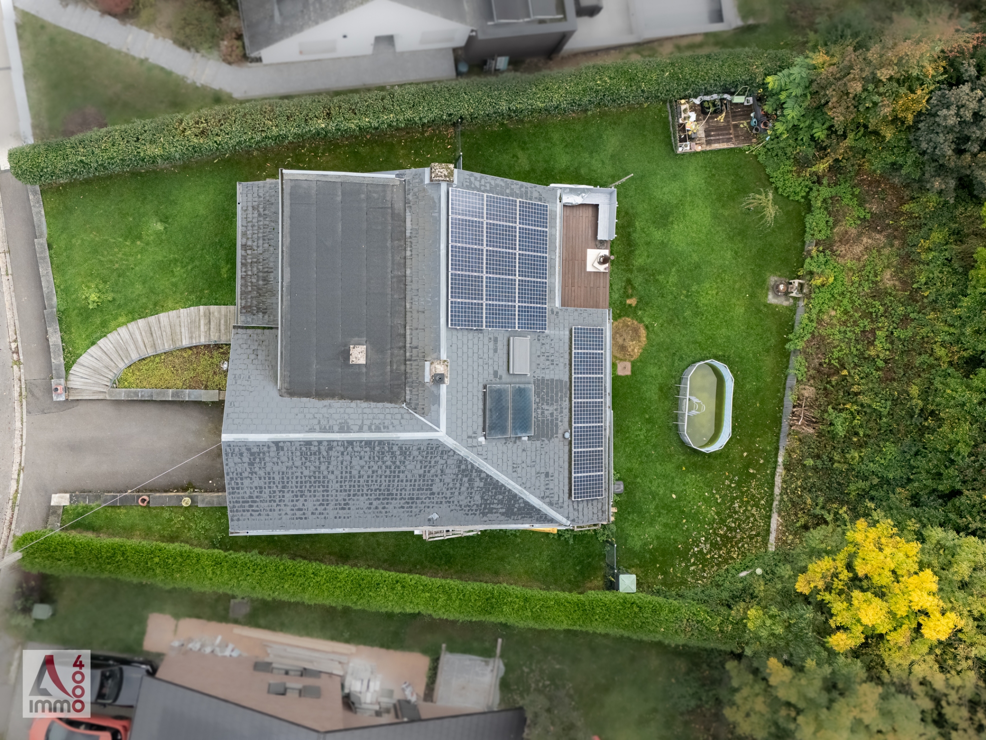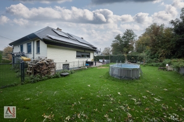 CC gaz avec chaudière au gaz à condensation de 2013 et son boiler indépendant, 22 panneaux photovoltaïques 245Wc, châssis PVC DV avec volets, alarme, toiture isolée, raccordement à l'égout, citerne eau de pluie (raccordement actuel aux chasses d'eau),....